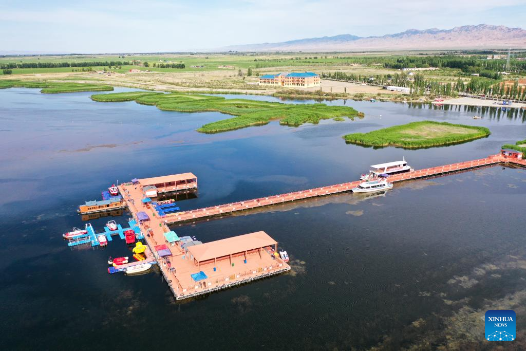 An aerial drone photo taken on June 4, 2025 shows the Ulansuhai Nur in Bayannur, north China's Inner Mongolia Autonomous Region. (Xinhua/Li Zhipeng)