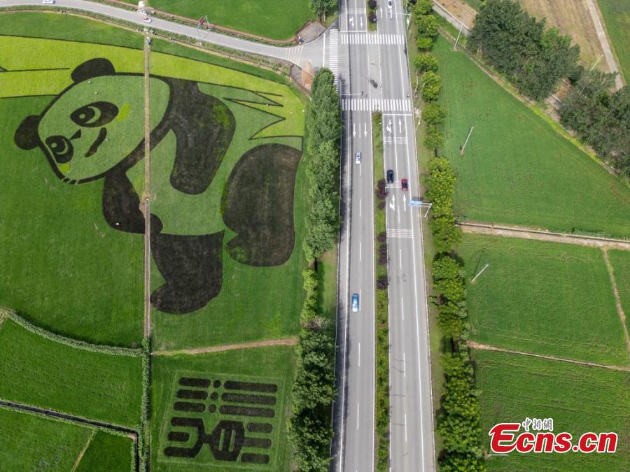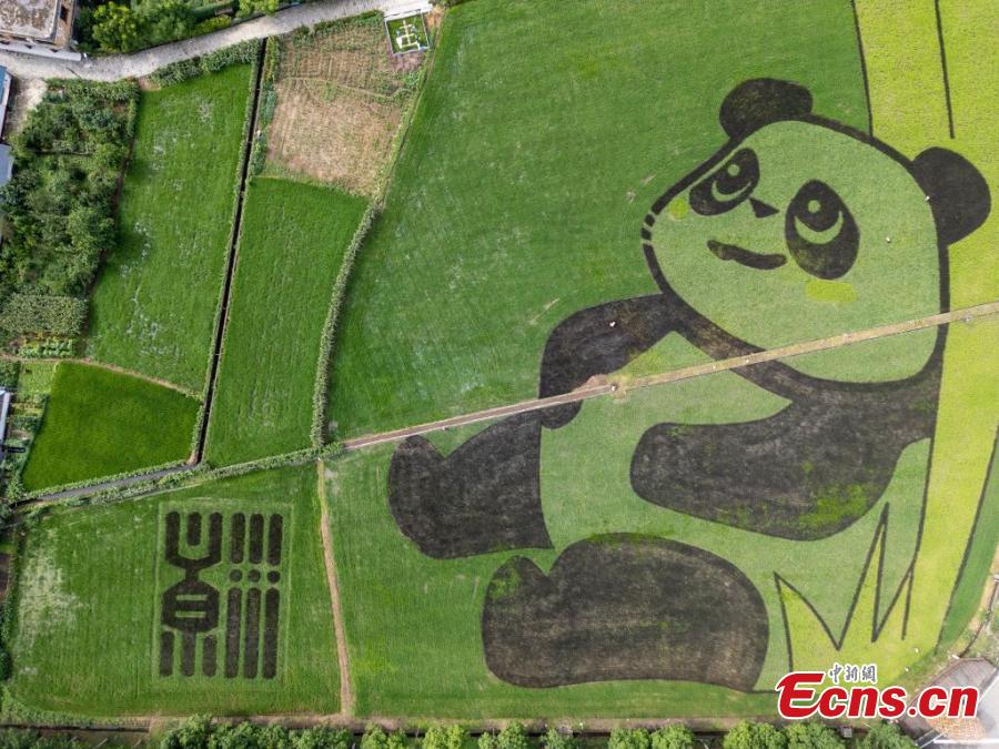 A giant panda pattern is created in a vast rice field at the Tianfu Granary National Modern Agricultural Industrial Park in Chengdu, southwest China's Sichuan Province, June 25, 2025. (Photo: China News Service/Zhang Lang)