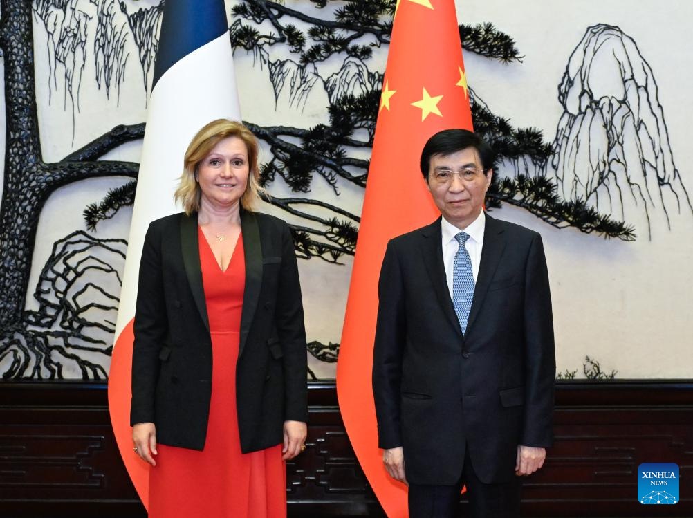 BEIJING, June 27 (Xinhua) -- China's top political advisor Wang Huning met with Yael Braun-Pivet, speaker of the French National Assembly, in Beijing on Friday.