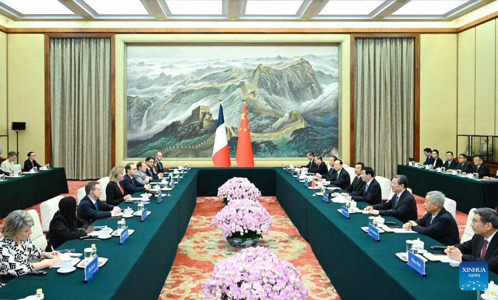 Braun-Pivet said the French National Assembly and the National People's Congress of China had a productive dialogue on Thursday, having in-depth discussions on economy and trade, people-to-people exchanges, environmental protection, biodiversity and international affairs.