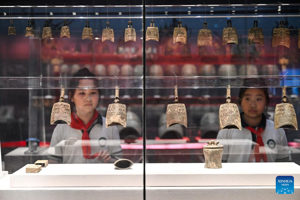 Students visit museum of Han king's mausoleum in Xuyi, China's Jiangsu