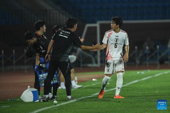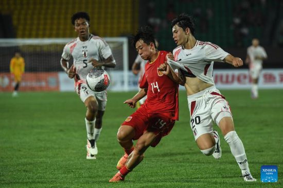 Satomi Tafuku (2nd L) of Japan competes during the CFA Team China Shenyang Peace Cup International Tournament 2025 football match between the U16 men's teams of China and Japan in Shenyang, northeast China's Liaoning Province, July 4, 2025. (Xinhua/Li Gang)