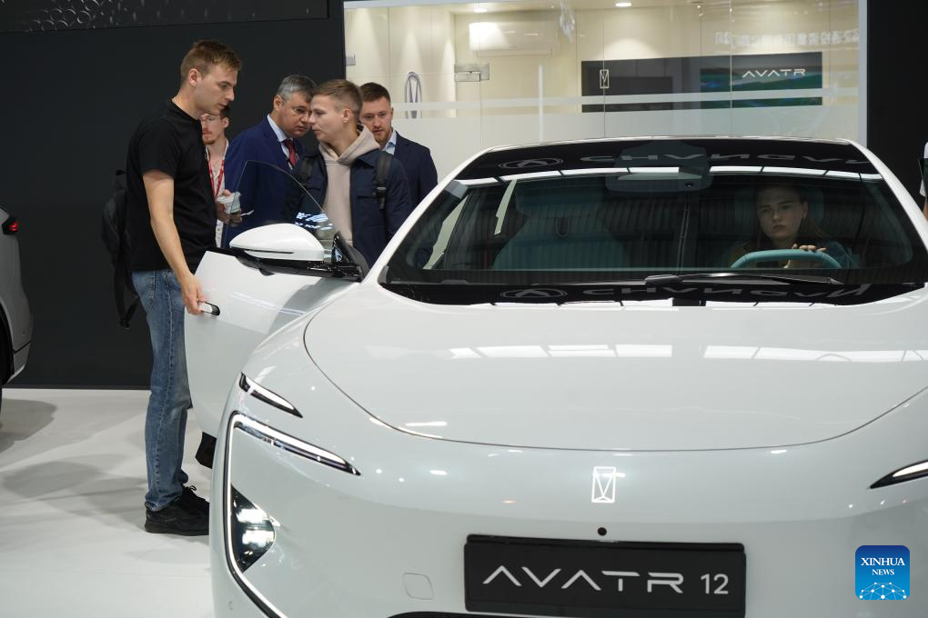 People visit the ninth China-Russia Expo in Yekaterinburg, Russia, July 7, 2025. Chinese enterprises showcase products in sectors such as electromechanical equipment, agriculture, health care, the digital economy and new energy at the event. (Xinhua/Liu Kai)