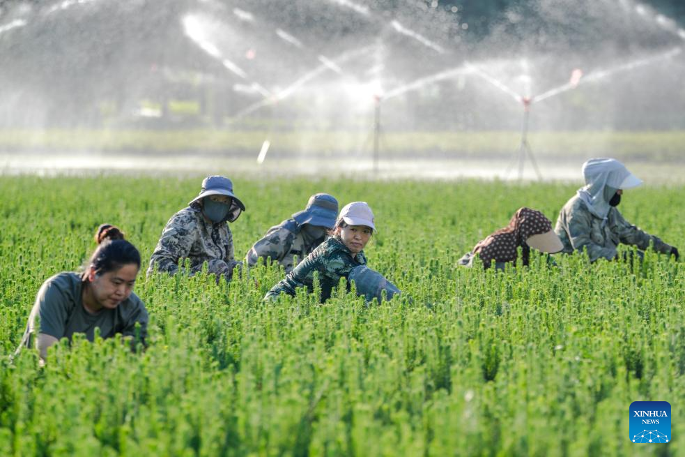 Staff members weed at a spruce tree nursery of a forest farm in Yakeshi of Hulun Buir, north China's Inner Mongolia Autonomous Region, July 10, 2025. In recent years, Yakeshi has leveraged its abundant forest resources to integrate forestry development with tourism, promoting "under-forest" economy to attract tourists. (Xinhua/Ma Jinrui)
