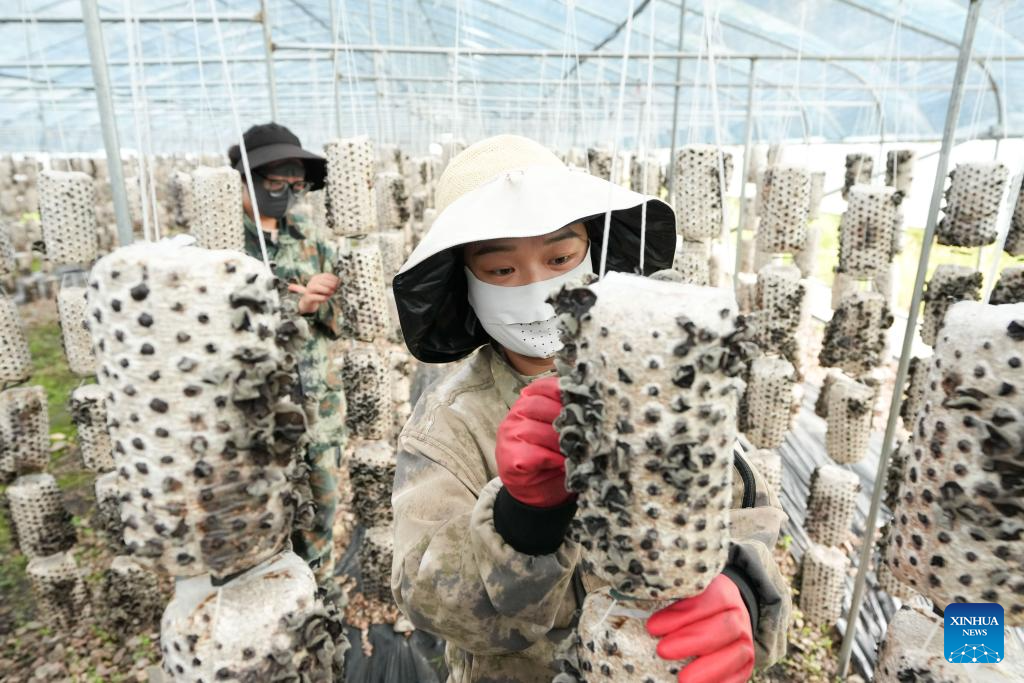 Staff members pick black fungus at a forest farm in Yakeshi of Hulun Buir, north China's Inner Mongolia Autonomous Region, July 10, 2025. In recent years, Yakeshi has leveraged its abundant forest resources to integrate forestry development with tourism, promoting "under-forest" economy to attract tourists. (Xinhua/Ma Jinrui)