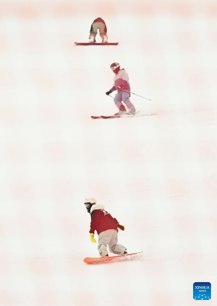 People ski at a ski slope in Zhengding County of Shijiazhuang, north China's Hebei Province, July 13, 2025. With heatwaves hitting some Chinese provinces and regions in recent days, the scorching temperature has fueled a cooling economy boom. (Photo by Chen Qibao/Xinhua)