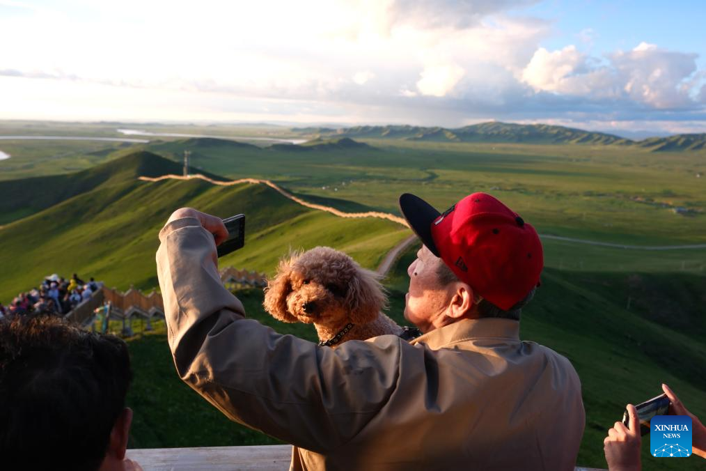 Tourists take photos at the Flower Lake scenic area in Ruoergai County, Aba Tibetan-Qiang Autonomous Prefecture, southwest China's Sichuan Province, July 13, 2025. Ruoergai County has recently entered its peak summer tourism season, attracting tourists nationwide. (Xinhua/Zhang Yawen)