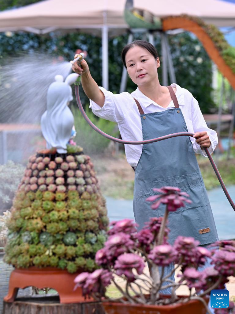 In recent years, Liu has promoted her succulent potted plants to local villagers and encouraged them to engage in this beautiful career for prosperity. "From a balcony to a garden full of hope, and from an individual hobby to a collective path, I hope to inspire more friends to lead lives as vibrant and fulfilling as succulents," said Liu. (Xinhua/Jiang Kehong)