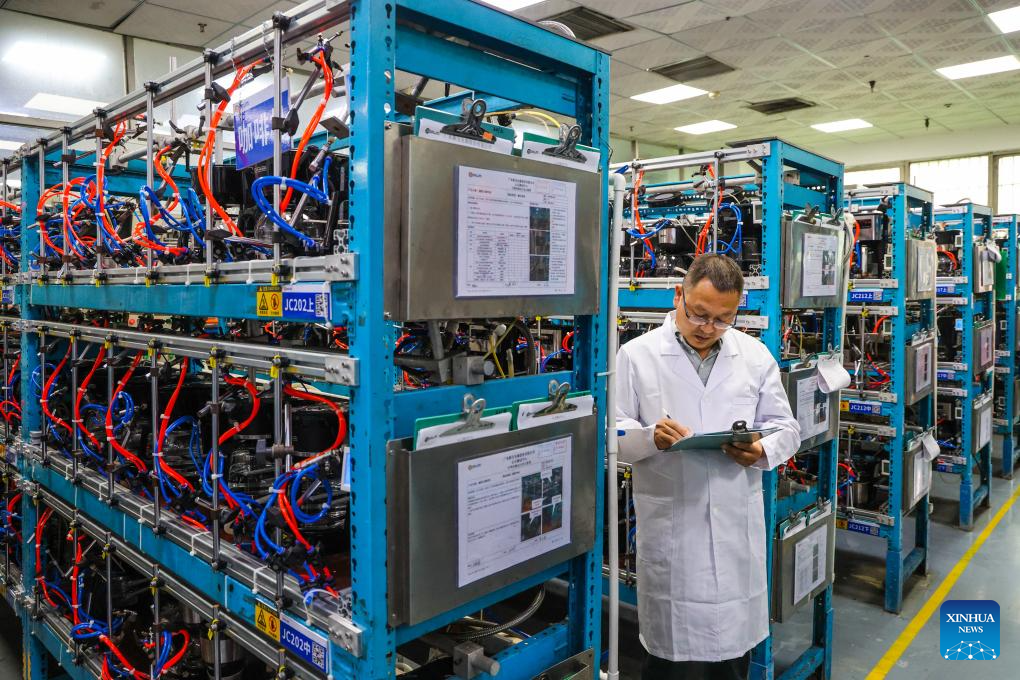 A technician tests a product at Xinbao Electric Appliances Holdings Co., Ltd. in Shunde City, Foshan, south China's Guangdong Province, July 24, 2025. In the first five months of 2025, Guangdong's import and export volume reached 3.75 trillion yuan (about 521 billion U.S. dollars), marking a four-percent increase year on year and outpacing the national level by 1.5 percent. In recent years, private enterprises in Guangdong have been pursuing a quality-oriented development model while actively expanding their presence in international markets.