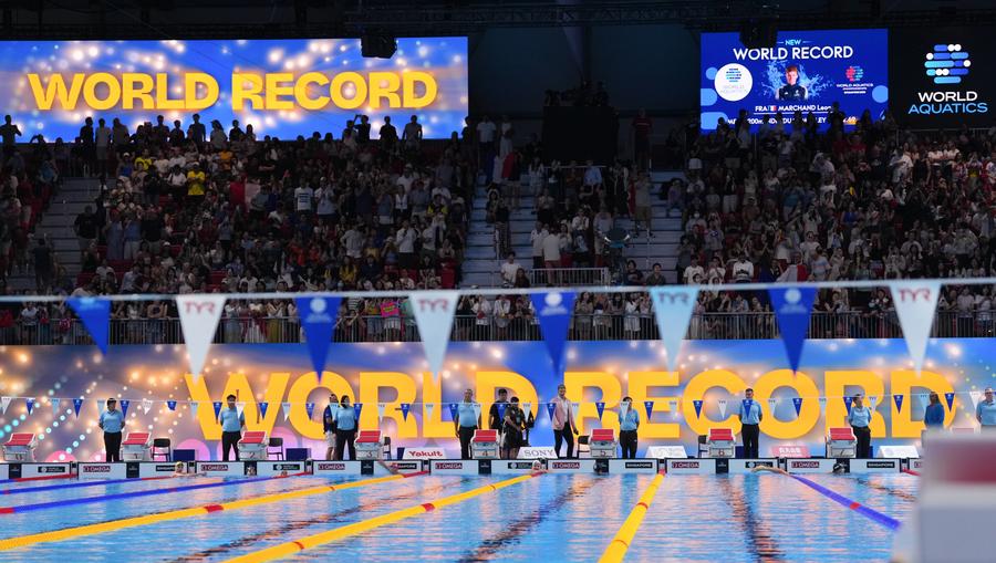 China wins two silver, Marchand sets 200m individual medley world record at Singapore Worlds
