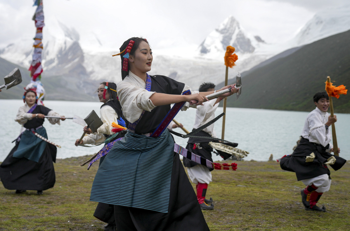 Local artistes perform Dabu Axie, a traditional Tibetan dance inscribed on the national intangible cultural heritage list, at Sapu Snow Mountain Scenic Area in Nagchu, Xizang autonomous region, on July 19. The city integrates cultural preservation with tourism, sharing Tibetan traditions with visitors during peak seasons. JIGME DORJE/ XINHUA