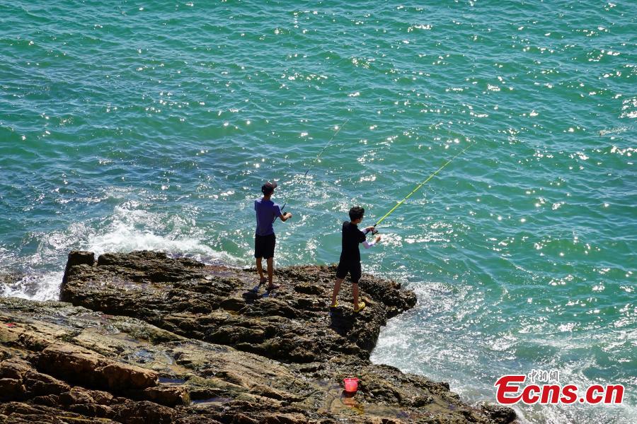 Tourists enjoy sea fishing along Qingbang Island's coastline in Zhoushan, east China's Zhejiang Province, Aug. 5, 2025. (Photo: China News Service/Zhao Zilin)