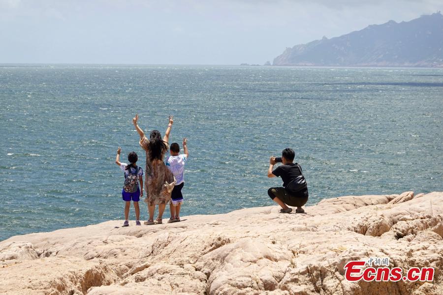 Tourists take photos by the seaside on Qingbang Island in Zhoushan, east China's Zhejiang Province, Aug. 5, 2025. (Photo: China News Service/Zhao Zilin)
