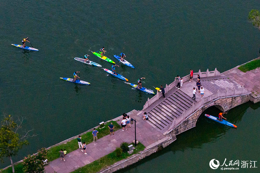 On Aug. 10, young night school students and athletes paddleboard together on Cihu Lake, Jiangbei district of Ningbo city, east China's Zhejiang Province. (People's Daily Online/Zhang Yongtao)