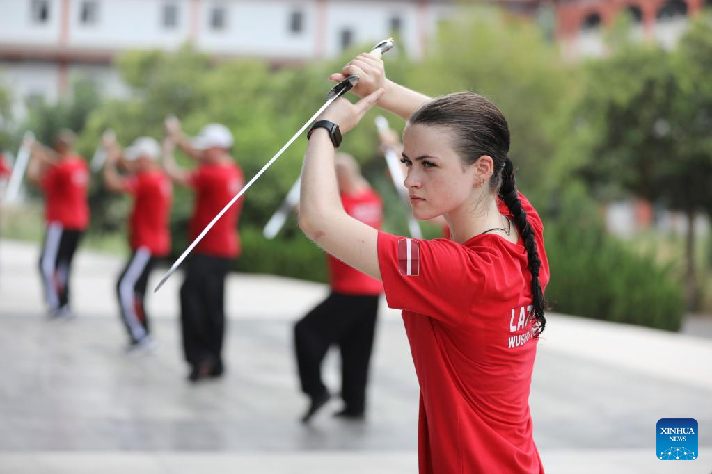 Latvian students practice Tai Chi at Chenjiagou Village of Wenxian County, Jiaozuo City, central China's Henan Province, Aug. 16, 2025. Twenty-nine students from Latvia are here on a 15-day program to study Tai Chi and experience the charm of Chinese martial arts.