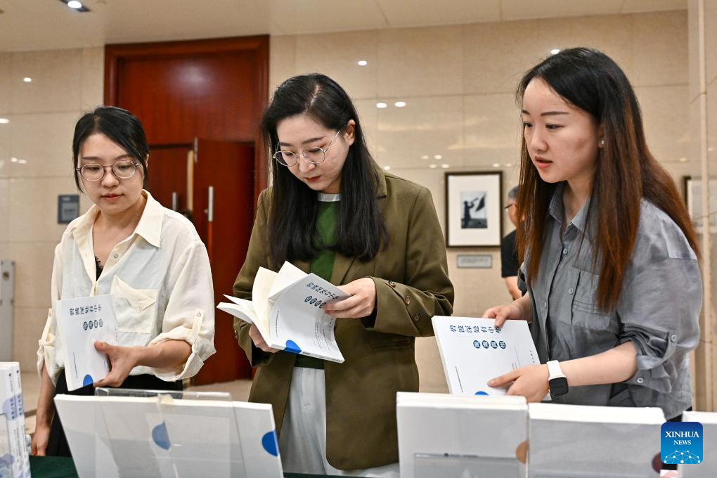 Participants view copies of the report titled "The Truths about the South China Sea" at a seminar in Beijing, capital of China, Aug. 21, 2025. (Xinhua/Li Xin)