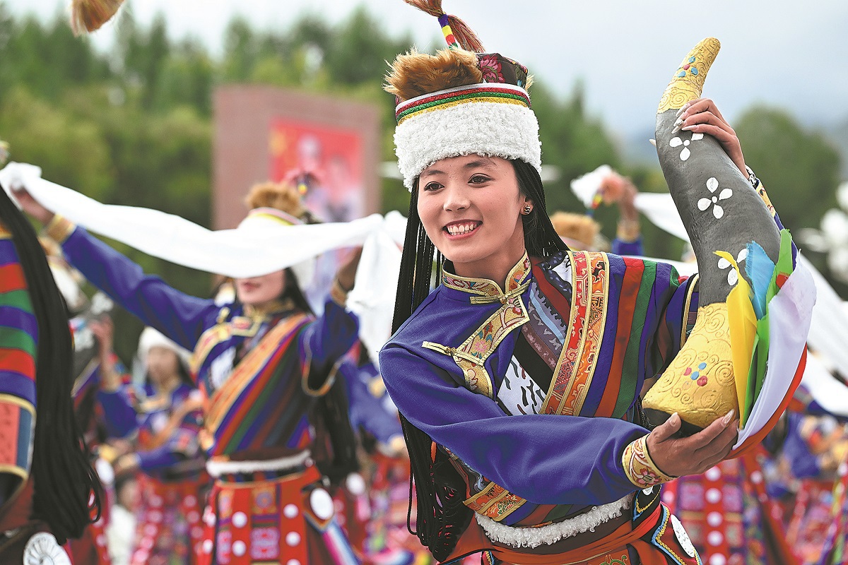 Residents at a mass parade during the grand gathering in Lhasa on Thursday. YAN YAN/XINHUA