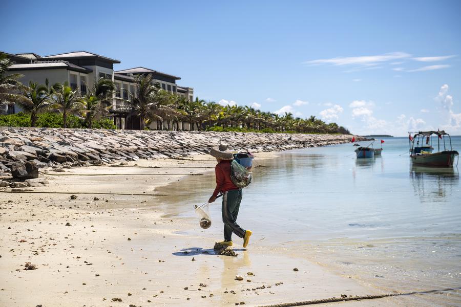 This photo taken on July 6, 2024 shows a fisherman returning from fishing on Zhaoshu Island in Sansha City, south China's Hainan Province. (Xinhua/Sun Ruibo)