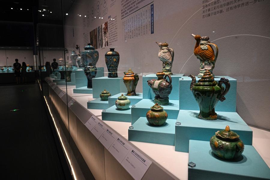 This photo taken on June 13, 2025 shows porcelain exhibits at the China (Hainan) Museum of the South China Sea in Qionghai, south China's Hainan Province. (Xinhua/Pu Xiaoxu)
