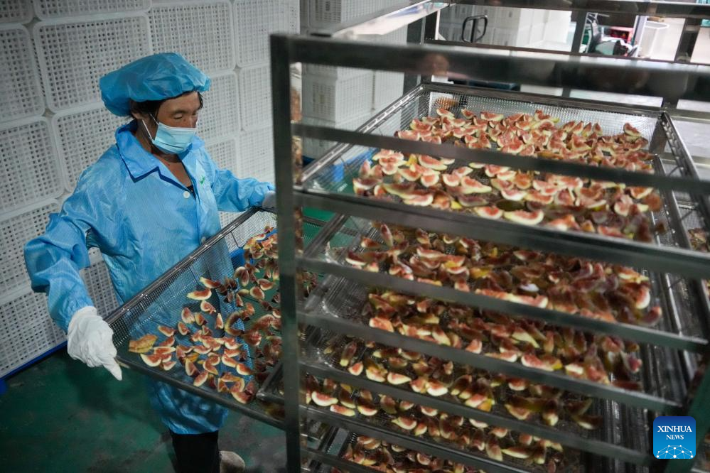 A staff member of a food processing enterprise manufactures dried figs in Xintai City of east China's Shandong Province, Aug. 24, 2025. Figs in Xintai City have entered harvest season recently. (Xinhua/Xu Suhui)