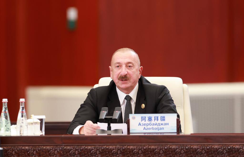 Azerbaijani President Ilham Aliyev attends the "Shanghai Cooperation Organization (SCO) Plus" Meeting in Tianjin, north China, Sept. 1, 2025. The Shanghai Cooperation Organization (SCO) convened the "SCO Plus" Meeting on Monday afternoon in north China's port city of Tianjin. (Xinhua/Ding Haitao)