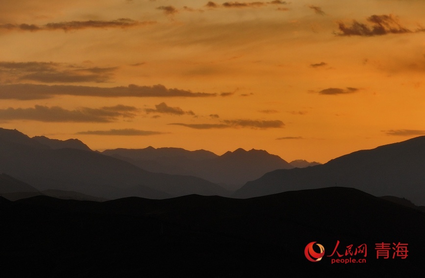 Photo shows the sunset over the Qilian Mountains in Qilian county, northwest China's Qinghai Province. (People's Daily Online/Gan Haiqiong)