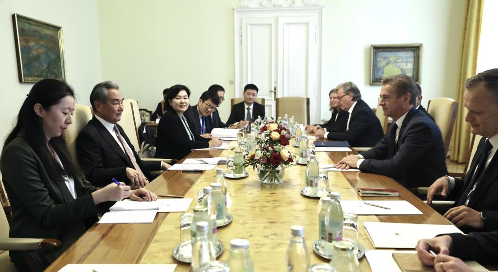 Slovenian Prime Minister Robert Golob meets with Chinese Foreign Minister Wang Yi, also a member of the Political Bureau of the Communist Party of China Central Committee, in Ljubljana, Slovenia, Sept. 13, 2025. (Xinhua/Li Jing)