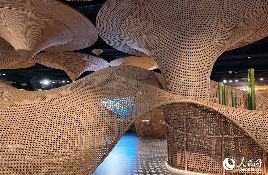 Photo shows an indoor woven bamboo artwork at an intangible cultural heritage park in Huaihua, central China's Hunan Province. (People's Daily Online/Huang Zhuo)