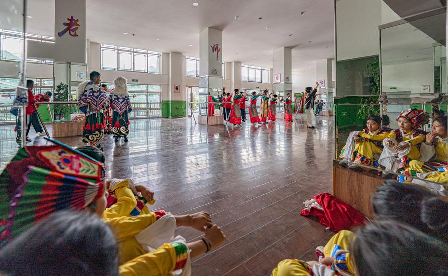 Students practice Tibetan opera at Lhasa Experimental Primary School in Lhasa, southwest China's Xizang Autonomous Region, Sept. 11, 2025. (Xinhua/Jigme Dorje)