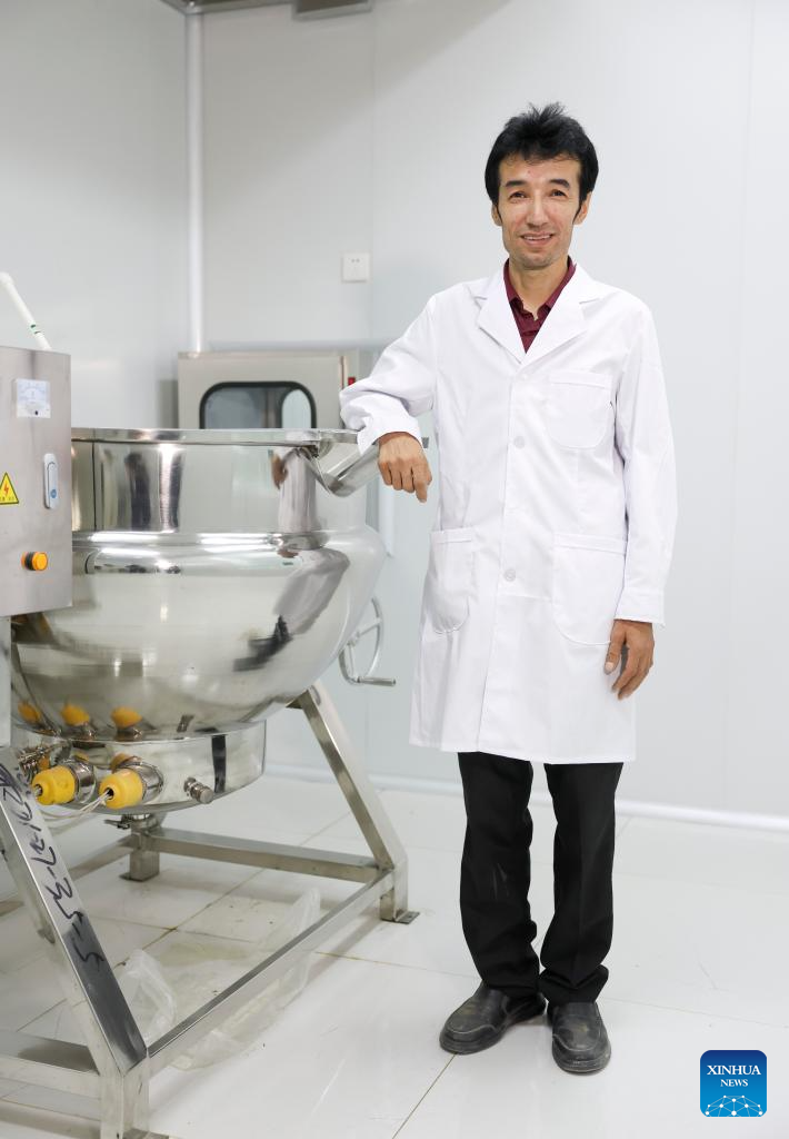 Metkasim Manglik poses for a photo at his factory which will soon be operational in Qira County, northwest China's Xinjiang Uygur Autonomous Region, Sept. 6, 2025. (Xinhua/Wang Fei)
