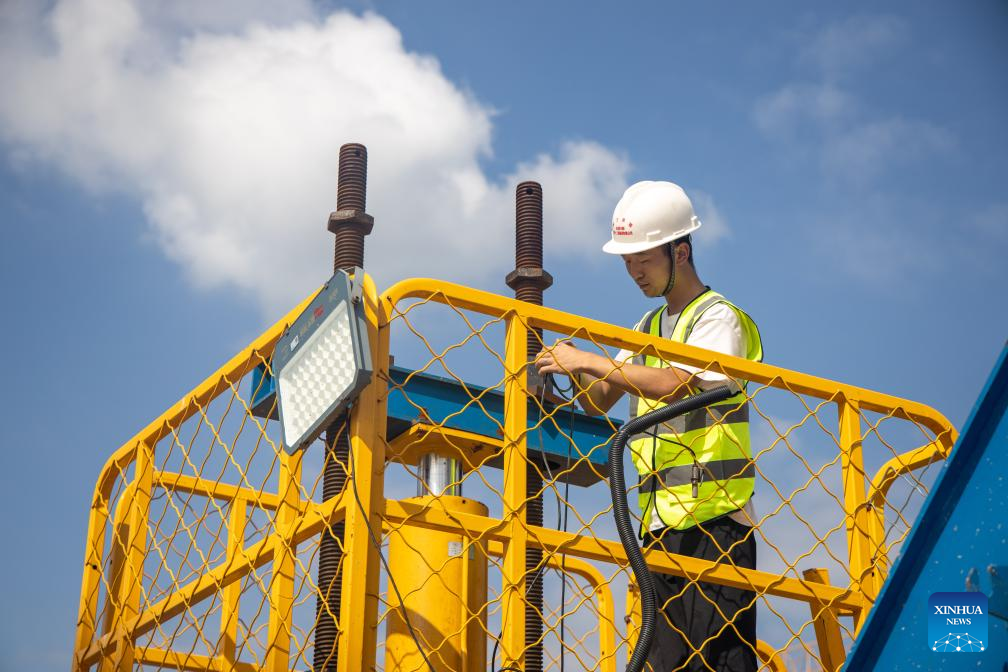 - T-beam rotated into place on Shuhe River super major bridge in N China