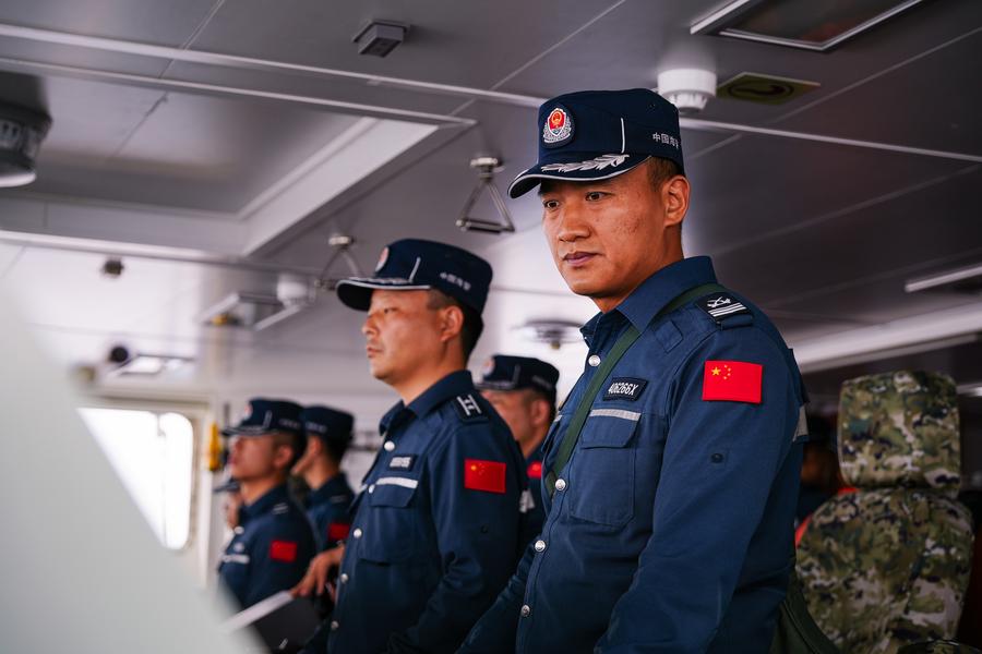 Law enforcers of the China Coast Guard vessel Chigua conduct law enforcement mission in the South China Sea, on Sept. 4, 2025. (Xinhua/Xu Hongyan)