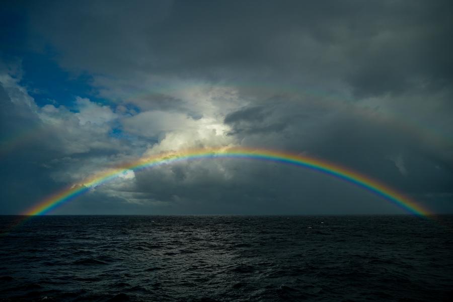 A double rainbow appears in the sky over the South China Sea, on Sept. 2, 2025. (Xinhua/Xu Hongyan)
