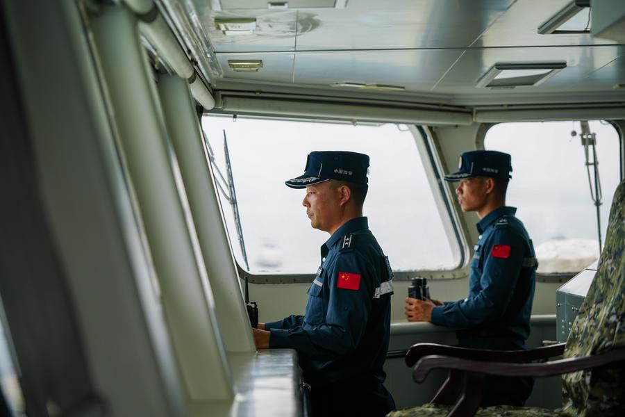 SOUTH CHINA SEA, Sept. 25 (Xinhua) -- Formations of the Fifth Bureau of the China Coast Guard (CCG) vessels recently conducted law enforcement patrols in the waters near China's Ren'ai Jiao. The CCG law enforcement activities have maintained maritime security and safeguarded China's territorial sovereignty and maritime rights and interests in the region.