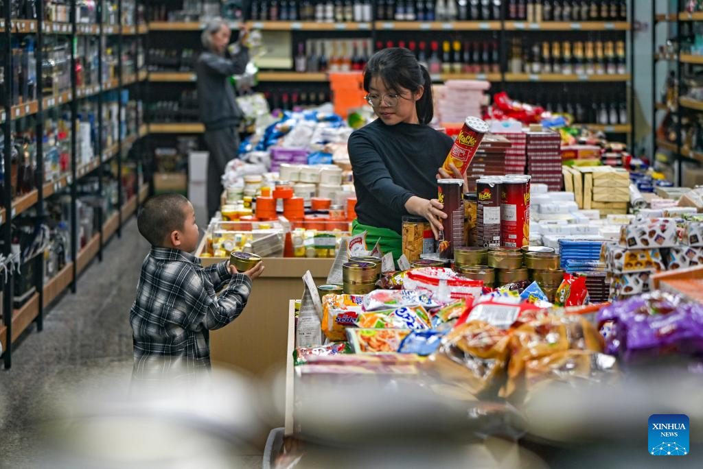 Tourists select commodities at a border trade center near Bakti port in Tacheng, northwest China's Xinjiang Uygur Autonomous Region, Sept. 17, 2025. Xinjiang is seeing increased vitality across the board as the region accelerates its efforts to the construction of the New International Land-Sea Trade Corridor, a key logistics network connecting China's western regions to global markets. (Xinhua/Chen Shuo)