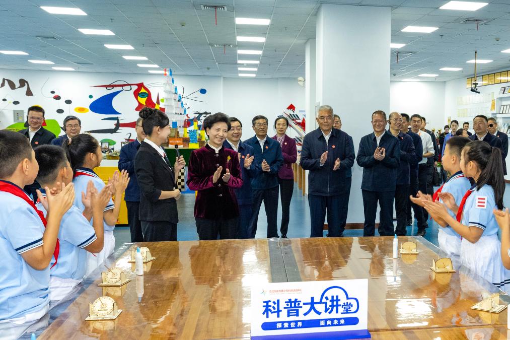 Shen Yiqin and members of a central delegation visit a culture and sports center in Karamay City, northwest China's Xinjiang Uygur Autonomous Region, Sept. 26, 2025. Entrusted by Xi Jinping, general secretary of the Communist Party of China Central Committee, members of a central delegation on Friday continued to visit local officials and residents in multiple areas of northwest China's Xinjiang Uygur Autonomous Region and the Xinjiang Production and Construction Corps (XPCC). (Xinhua/Jiang Fan)