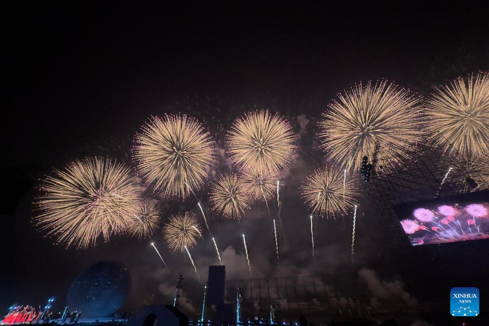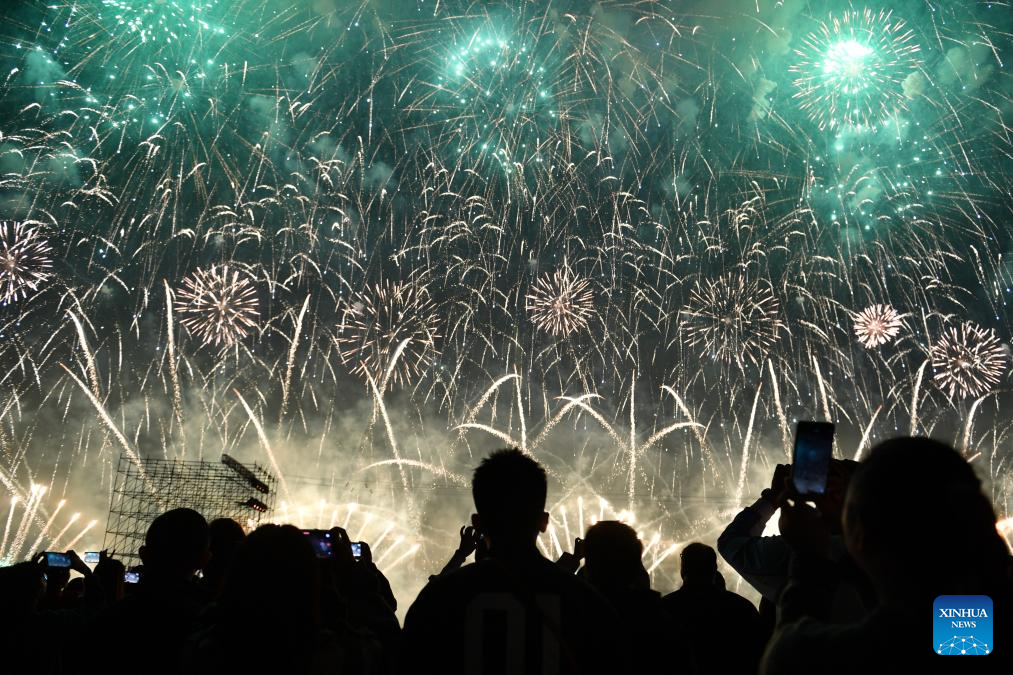 A firework show is staged in Liuyang City, central China's Hunan Province, Oct. 24, 2025. The opening ceremony of the 17th Liuyang Fireworks Cultural Festival was held here on Friday. Liuyang is well-known for its fireworks industry. (Xinhua/Dai Bin)
