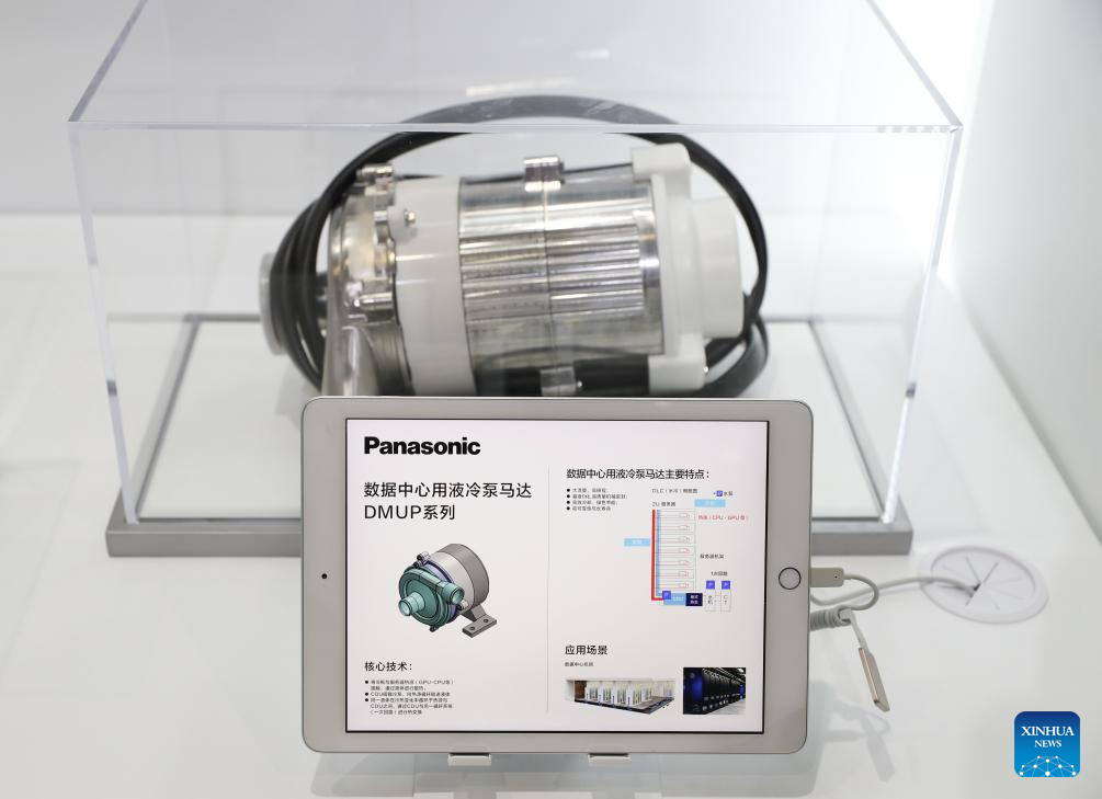 Panasonic's liquid cooling pump motor for data centers, which made its debut in Asia, is displayed at the Consumer Goods exhibition area during the 8th China International Import Expo (CIIE) in east China's Shanghai, Nov. 6, 2025. Many exhibitors debuted their latest products at the 8th CIIE in Shanghai. (Xinhua/Wang Jingqiang)