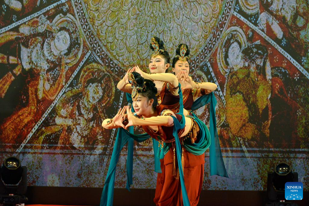 Chinese artists perform during an open day event at the Embassy of China in Cambodia in Phnom Penh, Cambodia on Nov. 8, 2025. The Embassy of China in Cambodia on Saturday hosted an open day event, welcoming hundreds of Cambodian youths. The event featured a variety of activities such as Chinese cultural performances, cuisine, and calligraphy, among others. (Photo by Phearum/Xinhua)