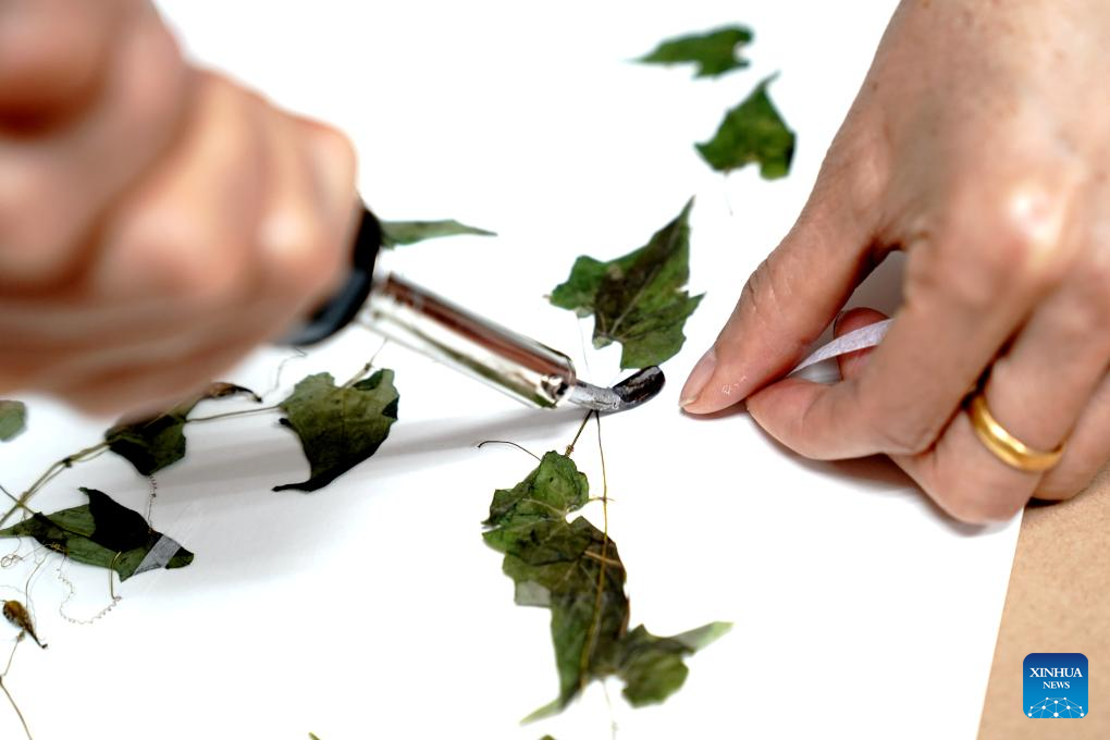A staff member binds plant specimens at the National Wild Plant Germplasm Resource Center for Shanghai Chenshan Botanical Garden in Shanghai, east China, Nov. 19, 2025. (Xinhua/Zhang Jiansong)