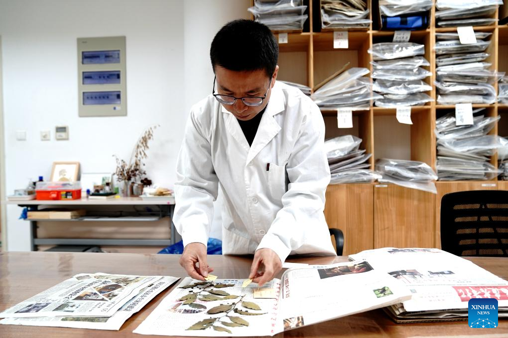 Ge Binjie, curator of the Shanghai Chenshan Herbarium, works at the herbarium in Shanghai, east China, Nov. 19, 2025. (Xinhua/Zhang Jiansong)