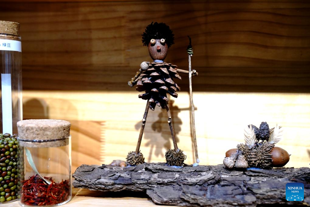 This photo shows a handicraft made by seeds on the seed specimen wall at the National Wild Plant Germplasm Resource Center for Shanghai Chenshan Botanical Garden in Shanghai, east China, Nov. 19, 2025. (Xinhua/Zhang Jiansong)