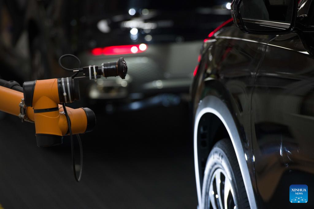 An AI-powered quality check robot works at a smart factory of Chinese Automaker Chery in Wuhu, east China's Anhui Province, Sept. 12, 2024. Wuhu in east China's Anhui Province is a key manufacturing hub, with its manufacturing sector covering 37 out of the country's 41 major industrial categories. Its signature industries include automobiles, green energy, and smart household appliances, each of which generates an annual output value reaching 100 billion yuan (about 14 billion U.S. dollars).