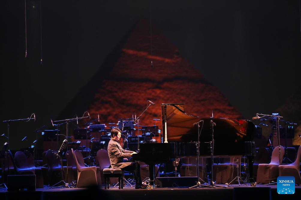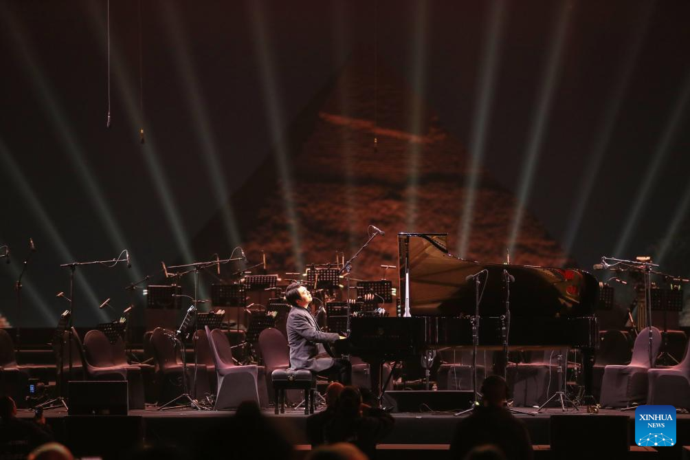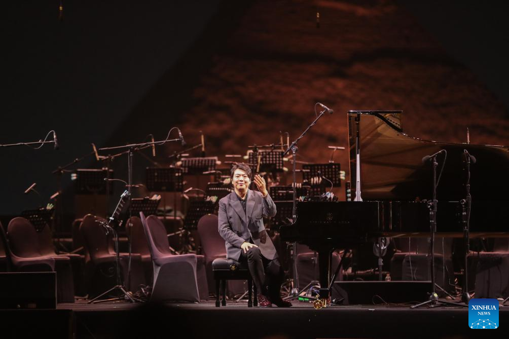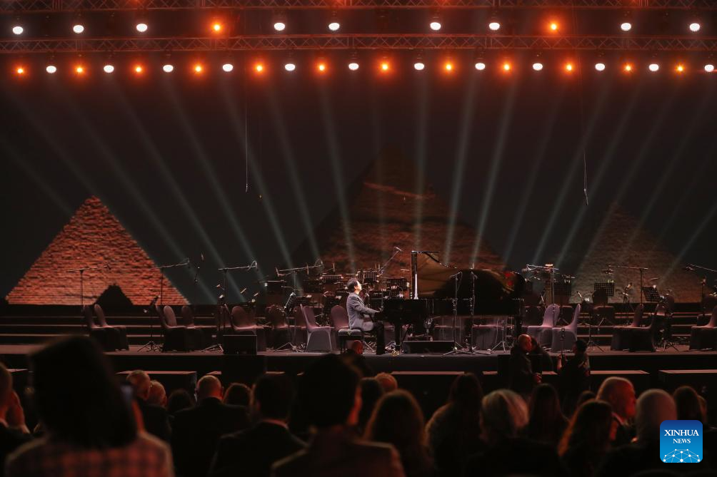 CAIRO, Nov. 25 (Xinhua) -- World-renowned Chinese pianist Lang Lang opened the first edition of the Pyramids Echo (TPE) festival in Egypt on Monday evening with a spellbinding performance at the Giza Plateau, marking a striking fusion of global classical artistry and the timeless grandeur of the pyramids, a breathtaking backdrop to the open-air theater.