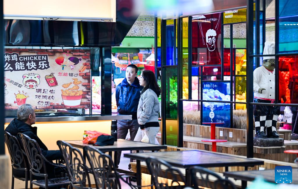 People chat at a leisure corner at Sanshui grocery market in Hexi District of Tianjin, north China, Nov. 25, 2025. (Xinhua/Zhao Zishuo)