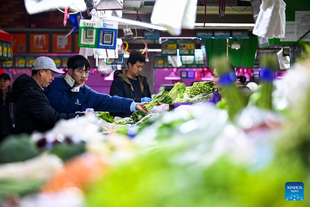 People shop for vegetables at Sanshui grocery market in Hexi District of Tianjin, north China, Nov. 25, 2025. (Xinhua/Zhao Zishuo)