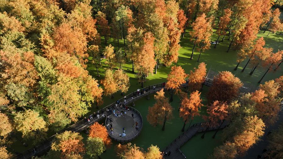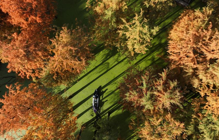 Waterlogged forest dressed in colorful "outfit" in E China's Hangzhou