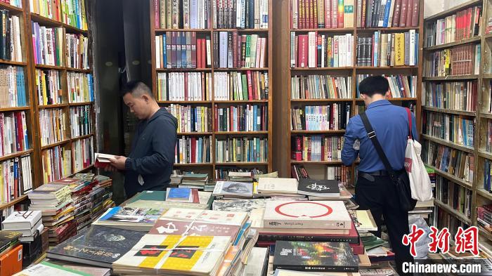 Photo shows two customers in a second-hand book store in Changsha city, central China's Hunan Province, April 19, 2024. (Photo/Zhang Xueying)