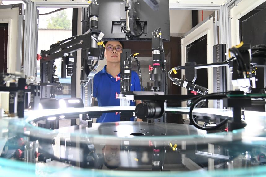 A technician of a machinery manufacturer in southwest China's Chongqing municipality fine-tunes an AI-powered industrial vision inspection system. (Photo/Sun Kaifang)