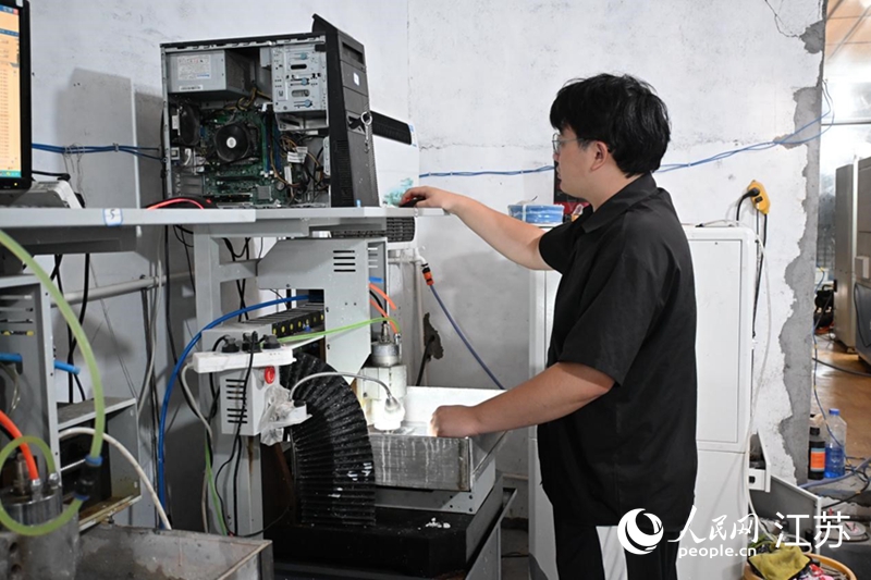 A young professional uses a carving machine to design jade products. (People's Daily Online/Zhang Hantian)